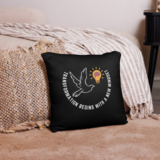 Basic Pillow | Better Outcomes | Slogan | Transformation Begins with a New Mindset | Black