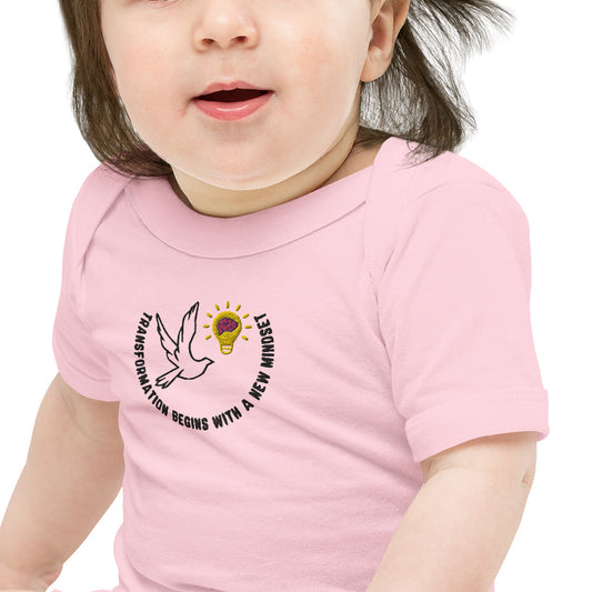 Baby Body Suit | One Piece | Better Outcomes | Slogan | Transformation Begins with a New Mindset | White and Pink