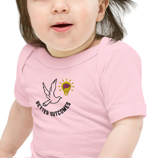 Baby Body Suit | One Piece | Better Outcomes | Logo | White and Pink