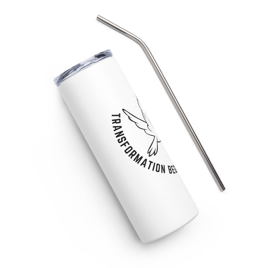 Stainless Steel Tumbler | Better Outcomes | Slogan | Transformation Begins with a New Mindset | White